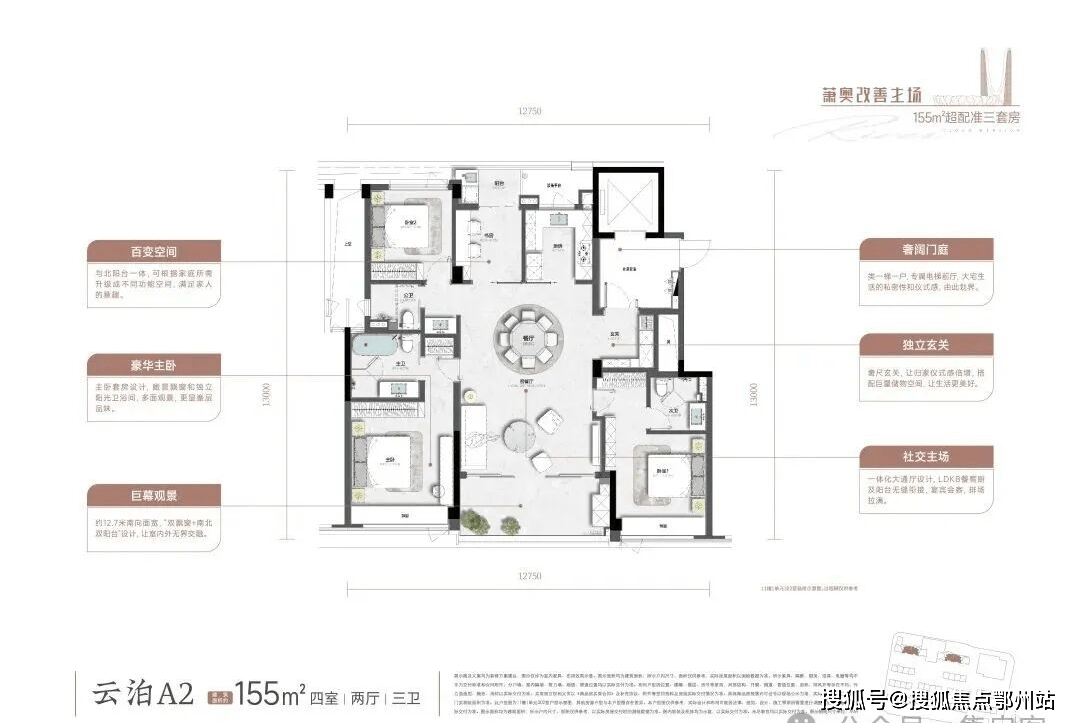 除却三大越级领先的产品力,望云庭室内空间打造同样亮眼,此次将同步开启的建面约155㎡大平层样板间,有着类一梯一户、高利用率、无遮挡采光、准三套房等诸多优点,在精装标准上,智能家居、全屋地暖等配置一个也不少,丝毫不逊千万级产品。