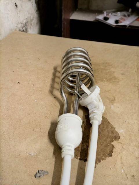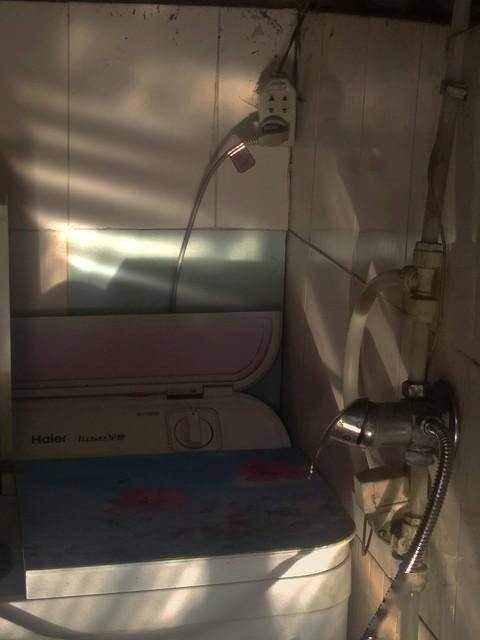 就是那种大圆桶或者扁桶的,一般60升、80升那种,得提前把一箱水烧好,洗澡的时候慢慢用。