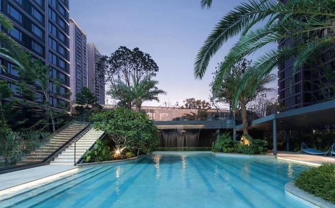 住宅区:以住宅主入口、仪式水景和碧波泳池为亮点,运用