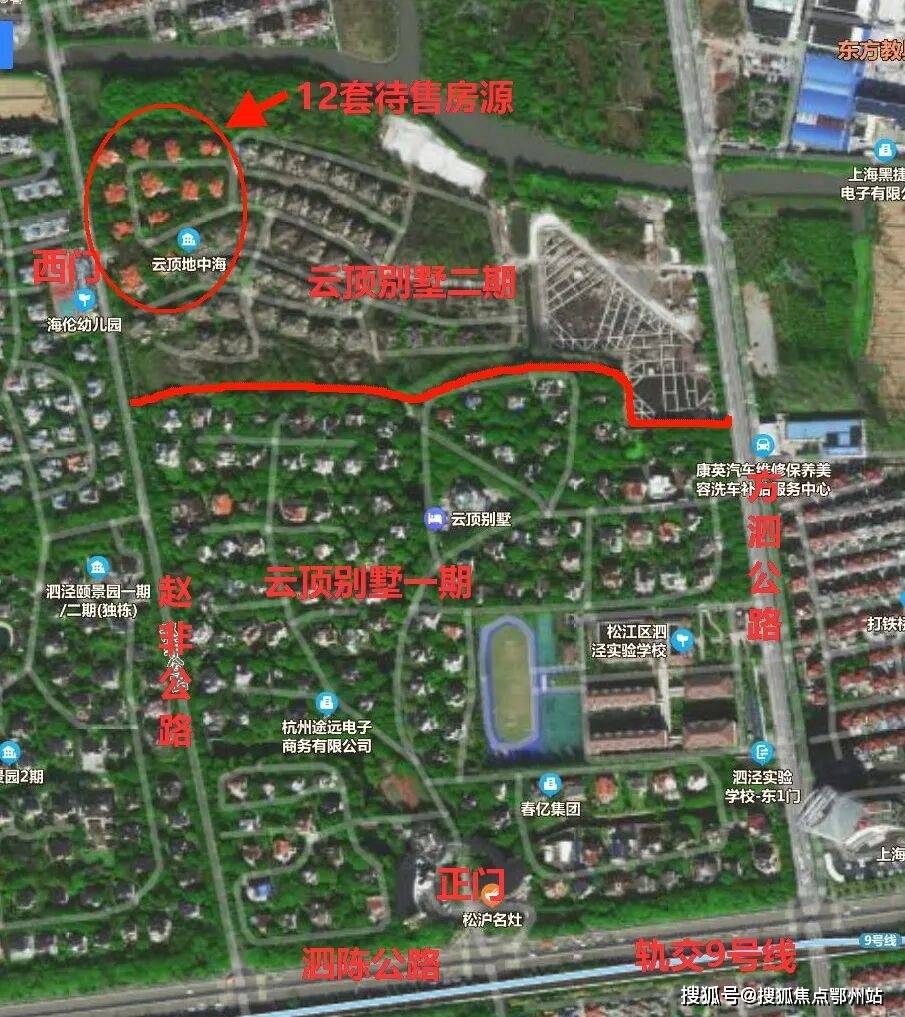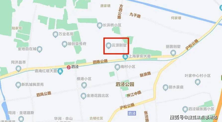 整个小区位于9号线泗泾地铁站东侧大约900米左右。很多人去了松江泗泾探访云顶别墅的待售楼栋,基本都会跑到云顶别墅2002年就交付的位于泗陈公路上的一期大门跟前,当然不是咯,找错地方了!