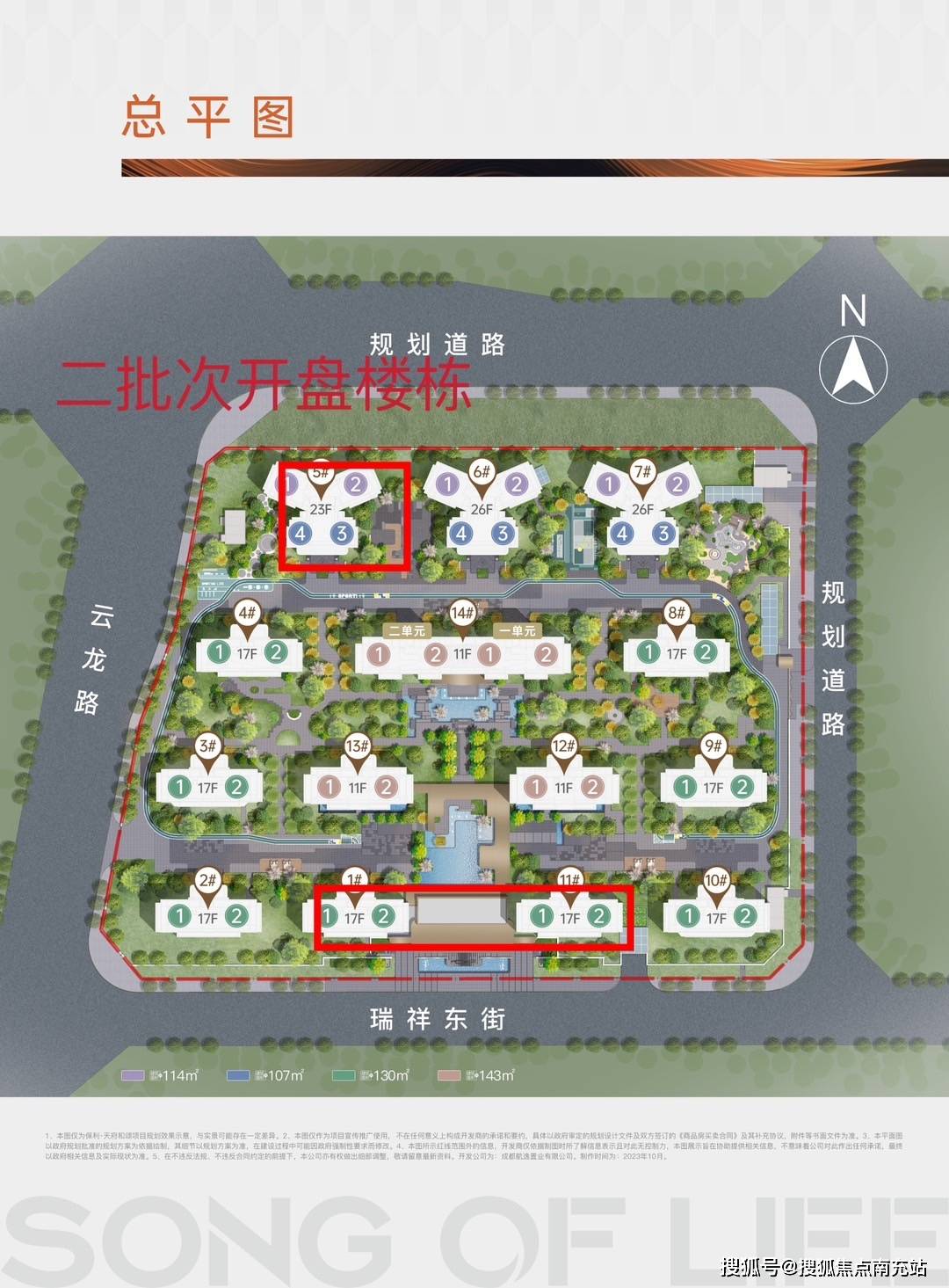 在售面积:130㎡(1、9、10、11号楼) 143㎡(12号楼)107、114㎡(7号楼)