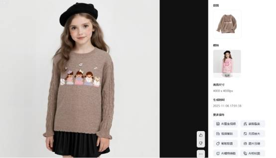 AI 图像生成与改图功能:通过文字描述或参考图自动生成风格一致的视觉素材,适合电商促销海报、主图和详情页图片制作。