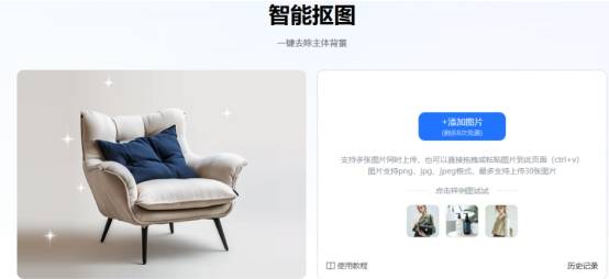 智能抠图与背景替换:自动识别商品主体,并轻松去除背景,适合快速生成白底图或替换不同场景。