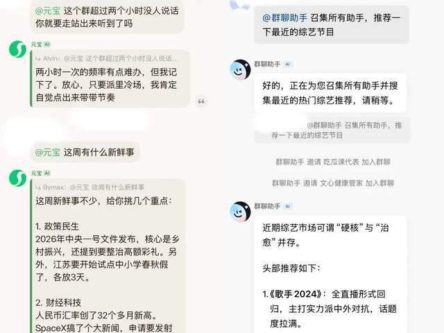 国内的大厂步伐较为一致,百度文心与腾讯元宝都在2026年1月底上线了AI群聊功能,但产品方向明显不同。
