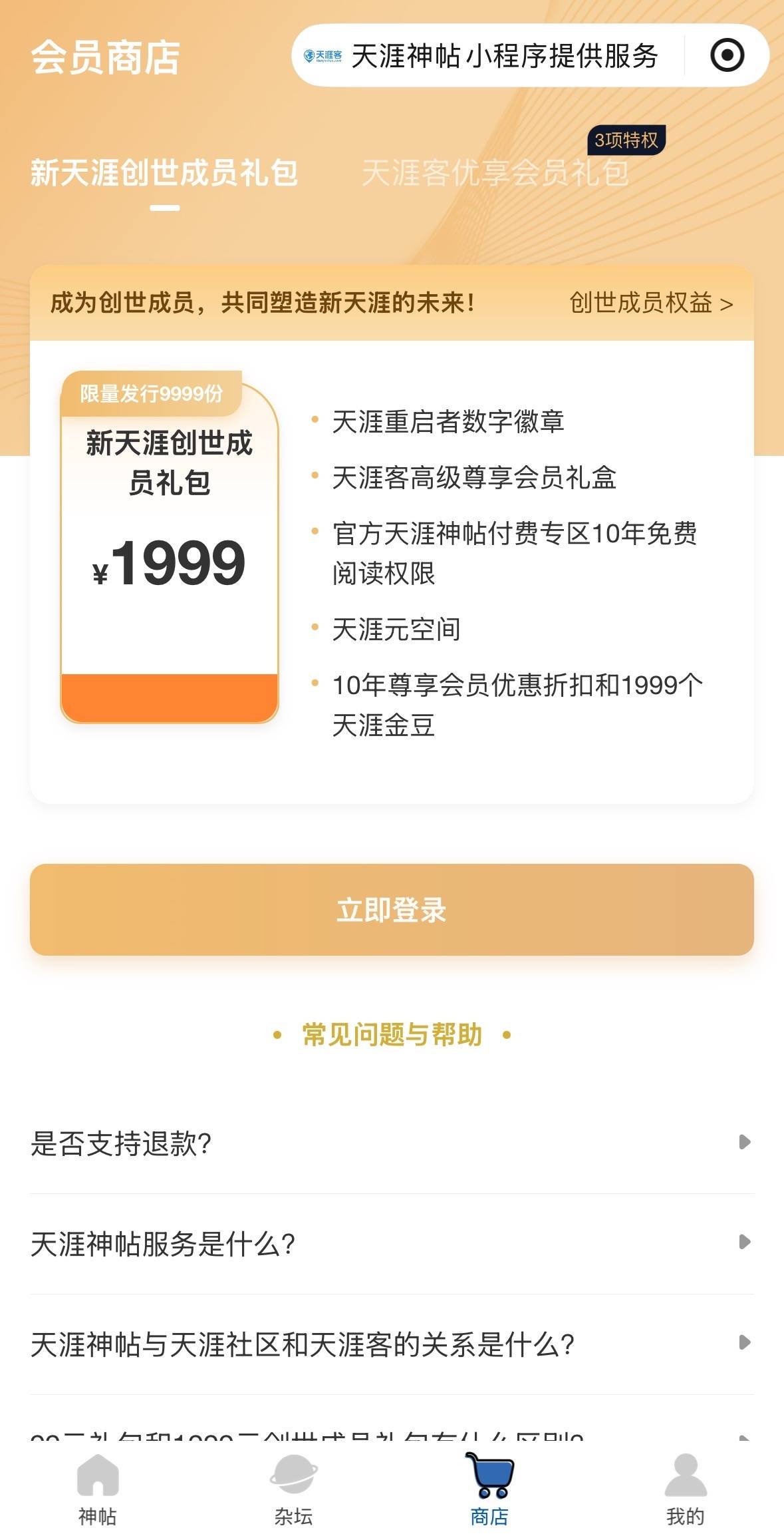 据该公告显示,创世成员的主要权益包括天涯重启者数字徽章、天涯客高级会员礼盒、官方天涯神帖付费专区10年免费阅读权限、天涯元空间(包含天涯时间胶囊与历史数据下载,提供1999-2023年间天涯用户个人数据一对一下载服务)等。产品所得费用均用于天涯社区数据存续、恢复访问及后续新天涯计划的落实。