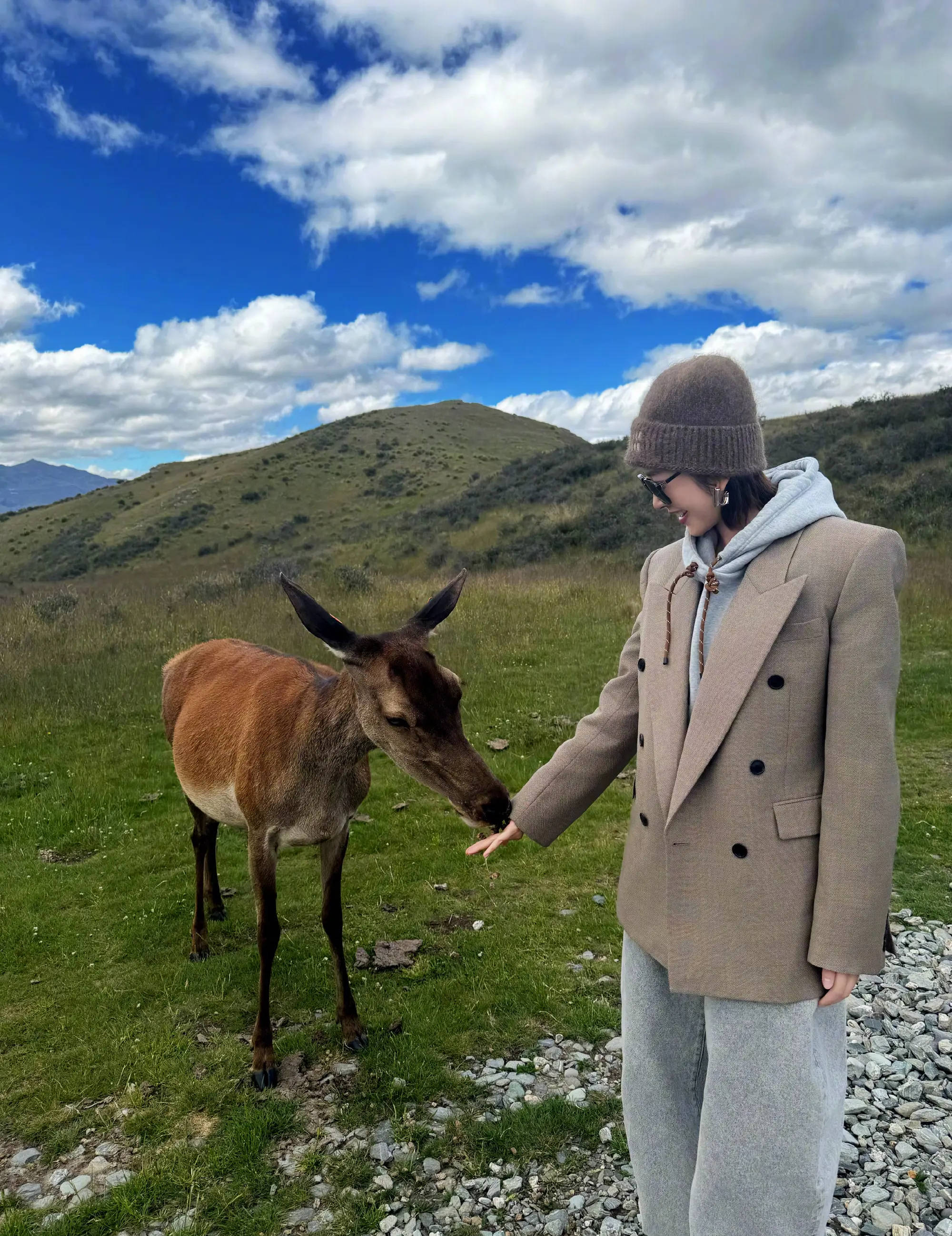 唐艺昕与动物互动。
