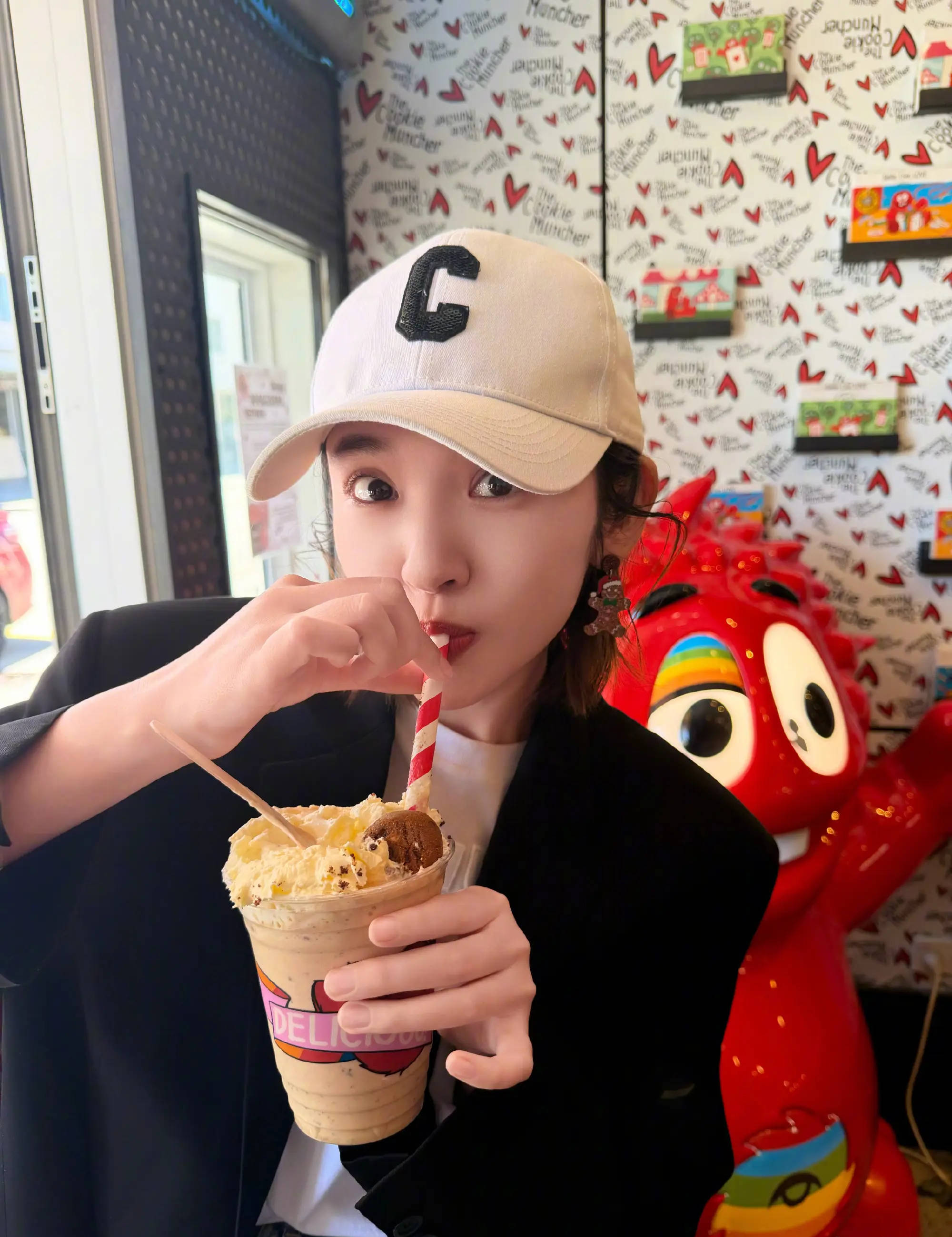 唐艺昕享用美味甜品。