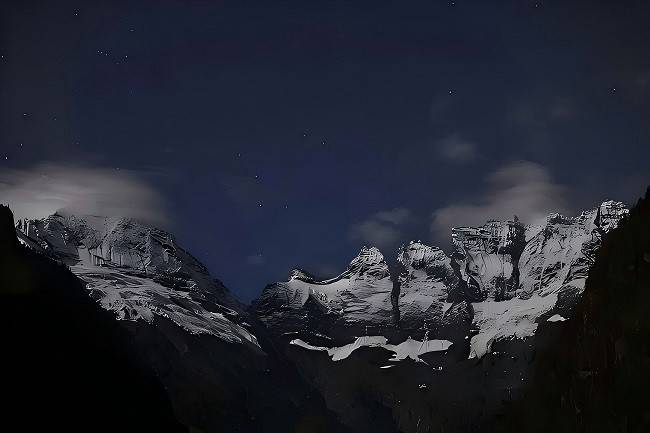 她回过头,一轮满月正悬于雪山之巅,清辉洒落,将终年积雪的山脊映成一片柔和的银白。“月照金山!”直播间瞬间被弹幕刷屏。张大壮安静地退到一旁,把镜头完全交给这意外的美景。