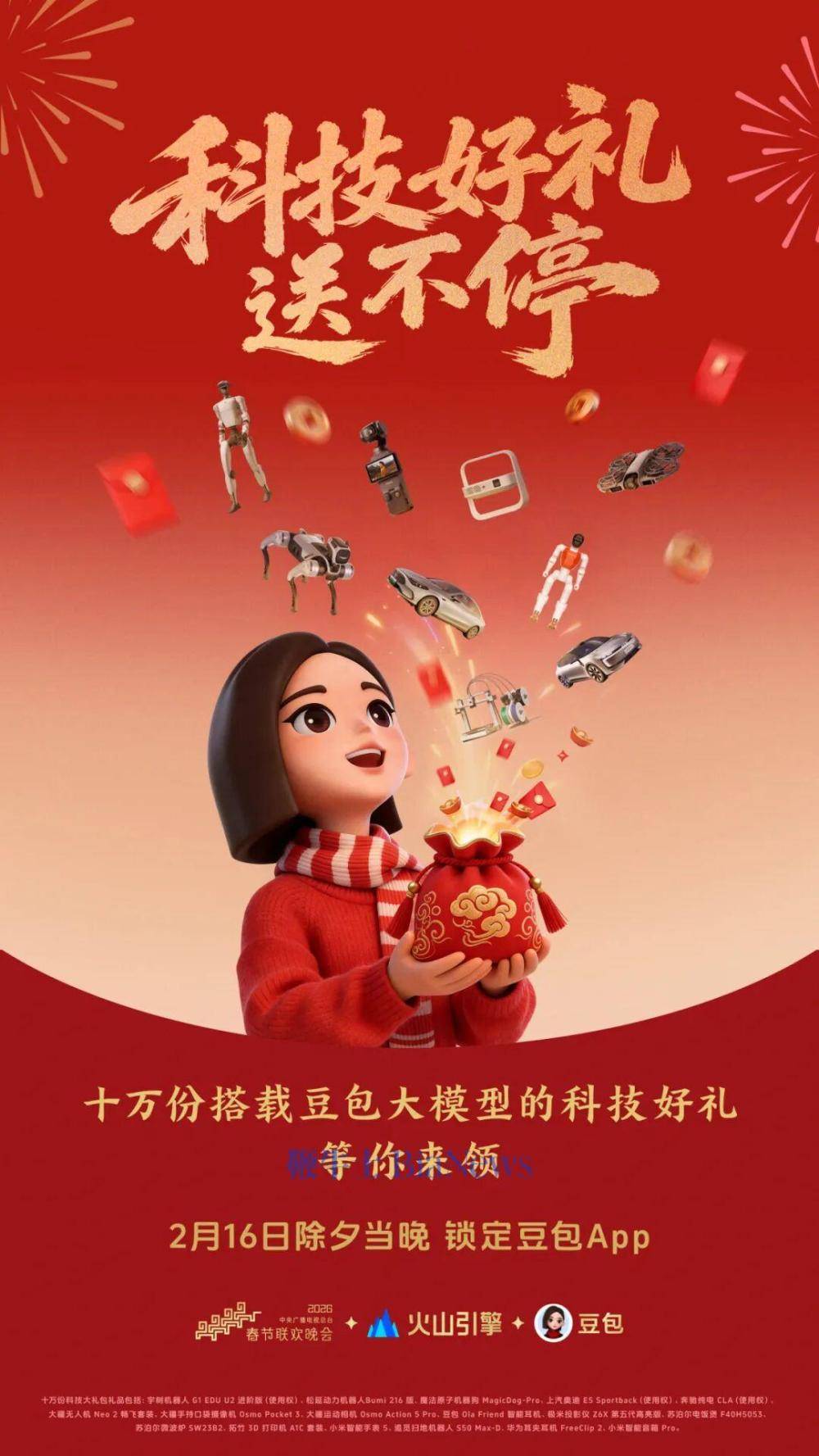 官方强调,这次送出的所有科技好礼,都接入了豆包大模型。