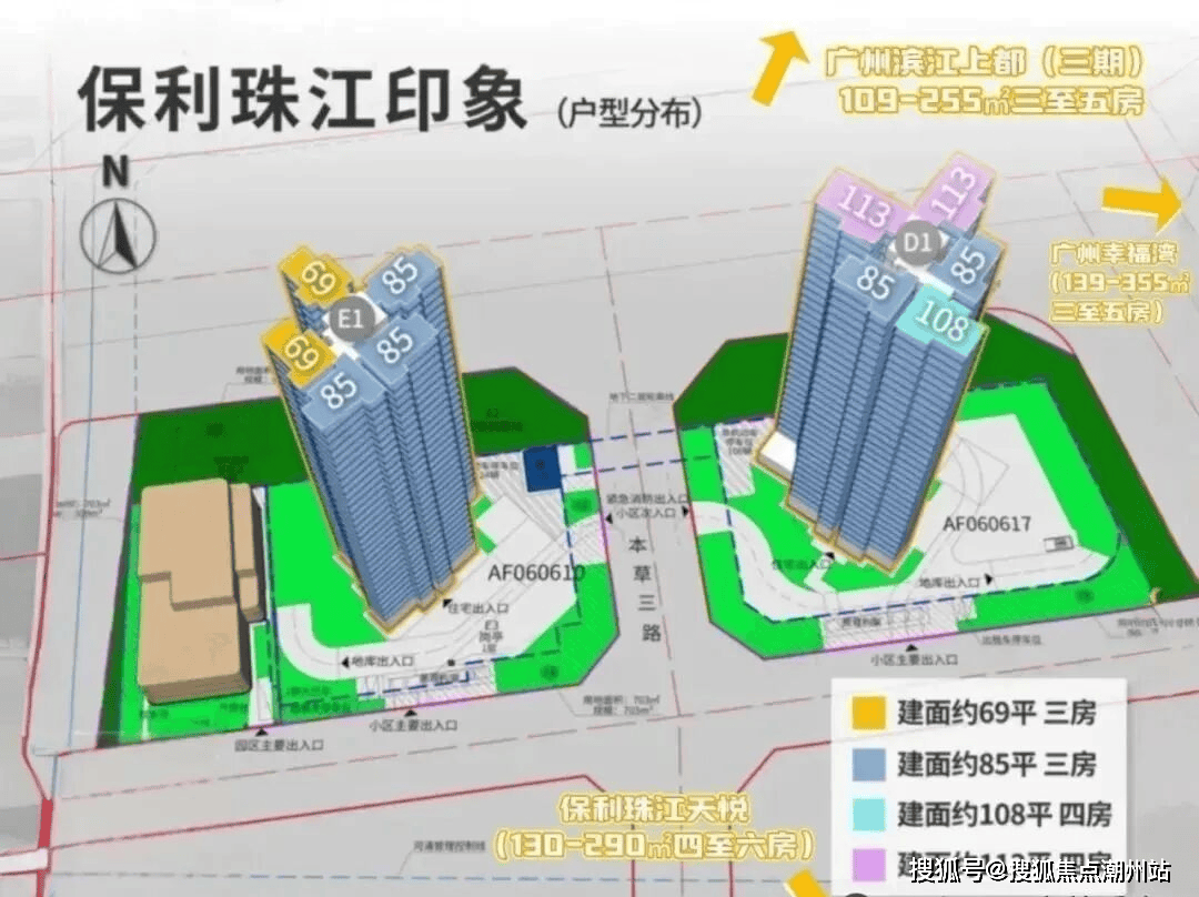 户型面积:建面69-85-108-113m²稀缺三四房户型