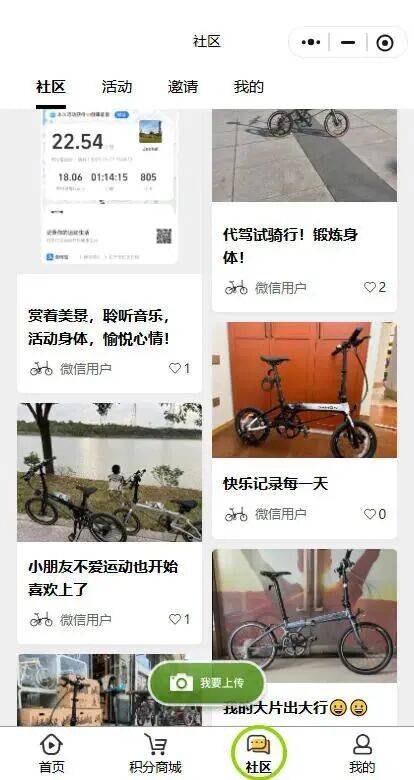 你是个爱分享的骑士吗?在小程序社区晒出你的骑行故事、出行攻略、改装心得,不仅能收获点赞,还能赚取积分~