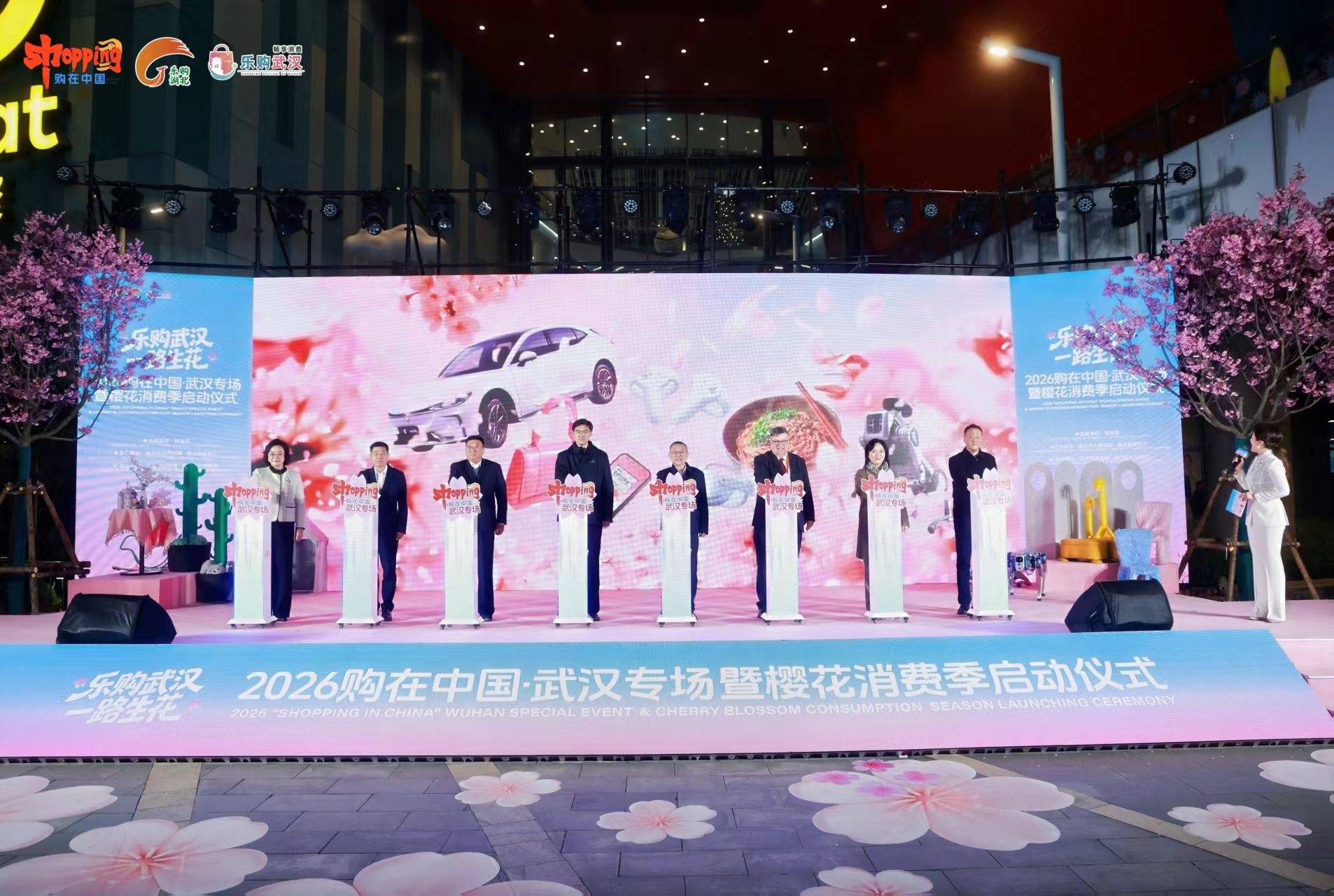 3月20日晚,2026“购在中国”系列首个城市专场活动——购在中国·武汉专场暨樱花消费季启动仪式,在武汉荟聚拉开帷幕。本次启动仪式由商务部指导,武汉市人民政府、湖北省商务厅主办,武汉市商务局、硚口区人民政府承办,以花为笺、以城为景,向全球发出中英双语邀约:来武汉,赏樱、食味、乐购、潮玩,一路生花。