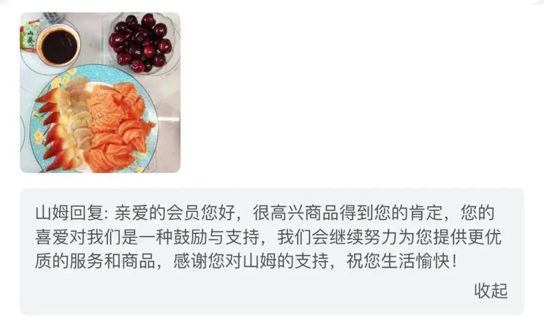 而山姆网购App却显示,评论区里很多消费者表示买回三文鱼后用于生吃,且上传了不少生吃的照片。山姆在评论区的回复中,并未提示不可生食。