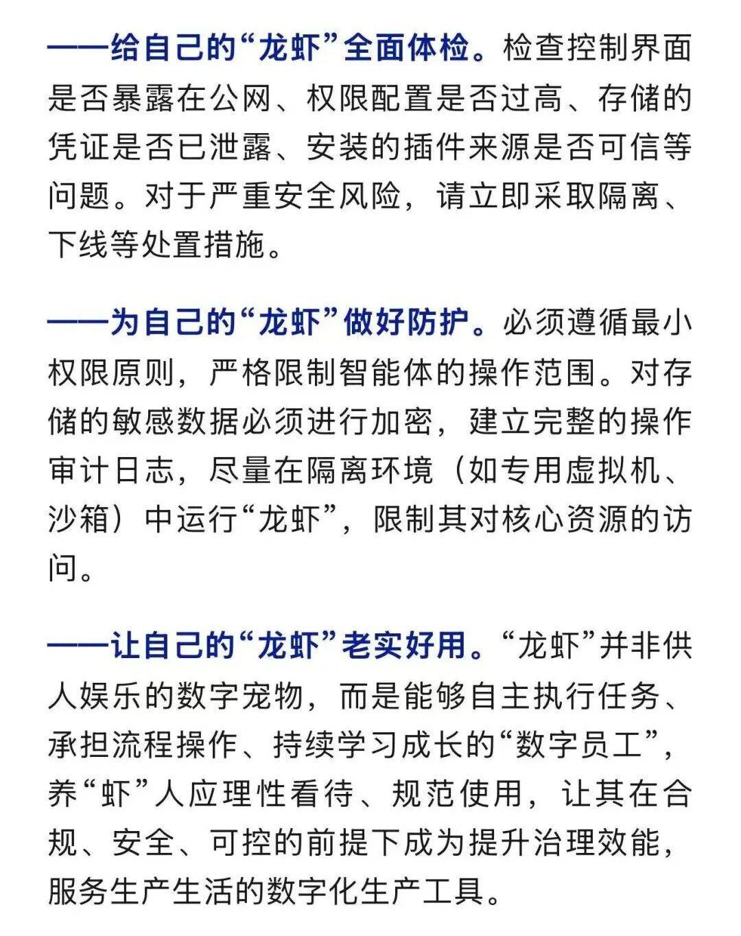 OpenClaw(昵称“龙虾”)是一款开源AI智能体工具,上线不久便迅速成长为2026年度现象级“开源奇迹”。不少用户从付费安装“龙虾”,到付费卸载“龙虾”,养“龙虾”正在成为一场智能体的狂欢。但火热的“龙虾”在创新改变生活的同时,也存在原生风险。国家安全部特别提示,广大用户要理性辨别、规范使用,以积极的心态和慎重的执行拥抱人工智能时代,让“龙虾”成为遵规守纪、产能高效的“数字员工”。