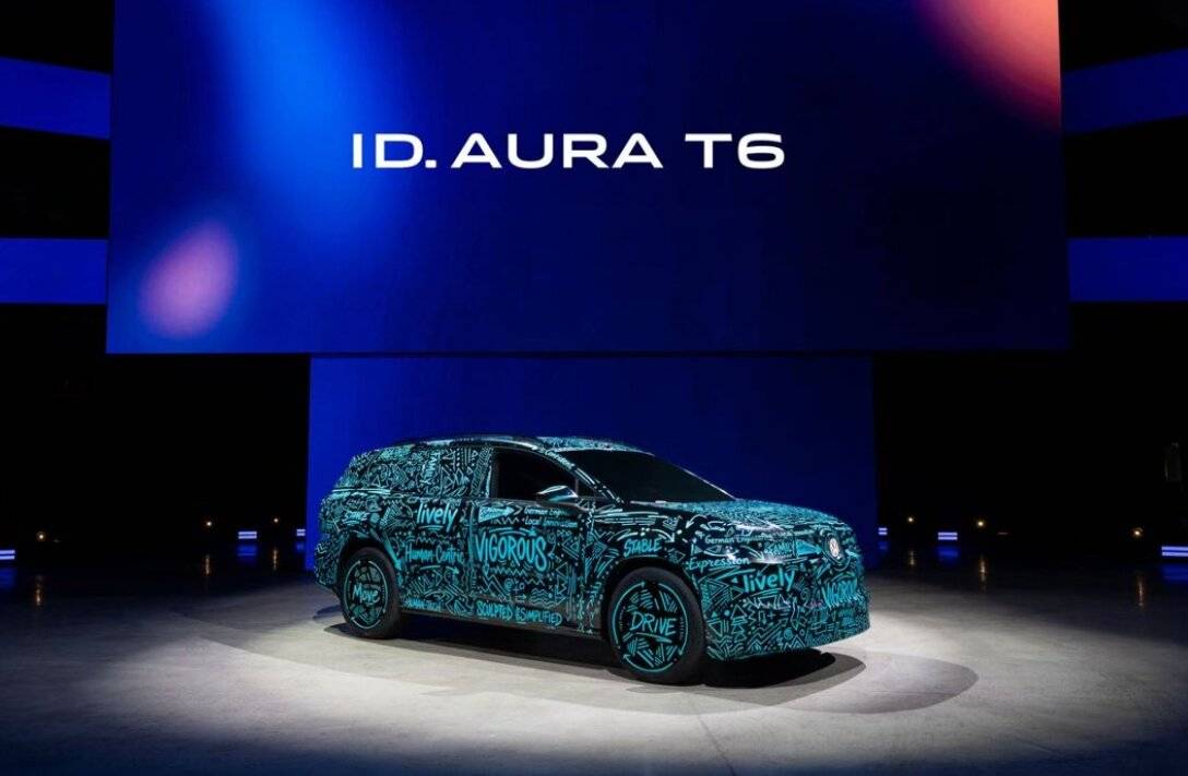 在品牌之夜上,一汽-大众全新ID. AURA T6首次亮相。 品牌之夜上的这款车型还涂着伪装色。将在2026年北京车展上首次对公众公开亮相。