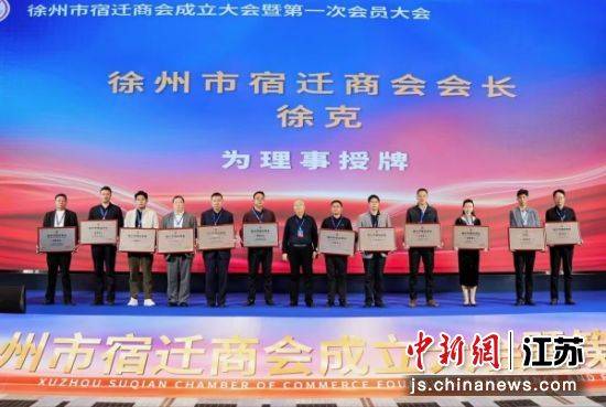 新当选的徐州市宿迁商会会长徐克为理事授牌。徐州市宿迁商会 供图