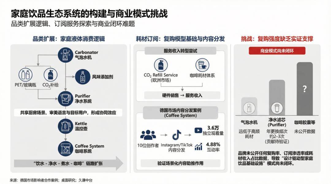 根据Grand View Research数据,全球气泡水机市场2024年至2030年复合增长率仅为3.8%,在这个低速增长的赛道里打价格战只会拖垮利润率。资本看中的是其跨品类扩展的商业张力和覆盖全球30余国的扩张潜力。
