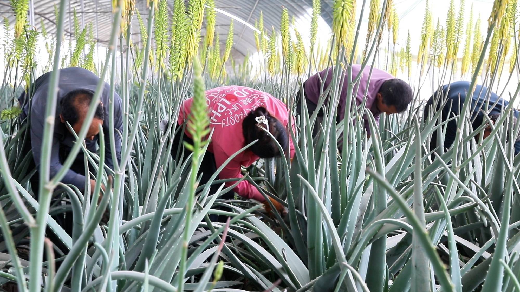 工人们正在采收芦荟 (吾哈力妮萨·努尔麦麦提 摄)
