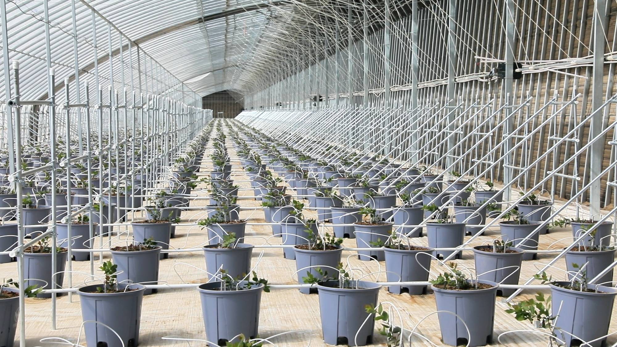 与此同时,园区300座蓝莓大棚长势良好,技术人员抢抓农时开展精细化管护。该项目聚焦南疆“果篮子”消费需求,着力打造南疆蓝莓种植示范基地,今年1月启动大规模定植,3月完成全部大棚定植工作,预计10月挂果、11月迎来首批采收。大棚全部配备智能温室系统,实现水肥、温湿度精准管控,蓝莓丰产期单座大棚年产量可达4.5吨,300座大棚总产值将达2000万元,既丰富了本地果蔬供给种类,也助力县域特色高效农业产业集群建设。