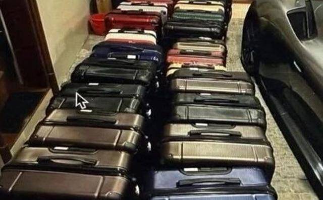 其中一张照片显示,27个被塞满现金的行李箱被堆放在一起,金额高达 10亿比索(约合人民币1.25亿元)。