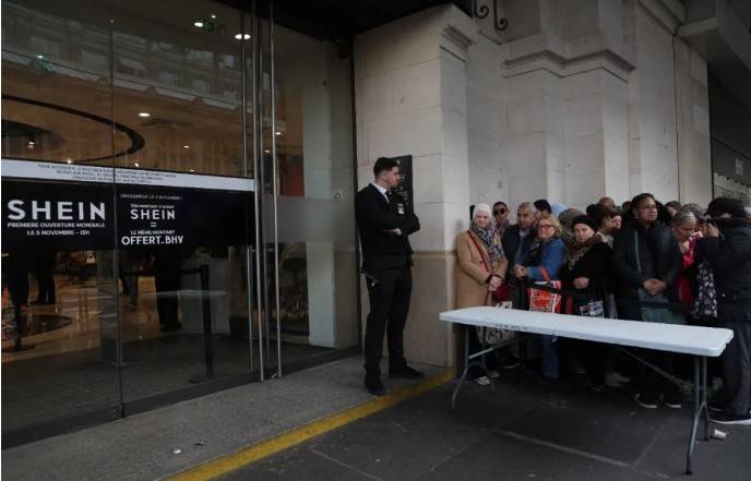 11月5日,在法国拥有2000万拥趸的中国快时尚品牌SHEIN(希音)巴黎首店在市政厅百货(BHV)开张。开业当天,等待“扫货”的顾客在门外沿着Rivoli街排起了百米长龙。1000平方米的空间里挂着不少中国制造的服饰,试衣间前挤满了拿着衣服的法国消费者。