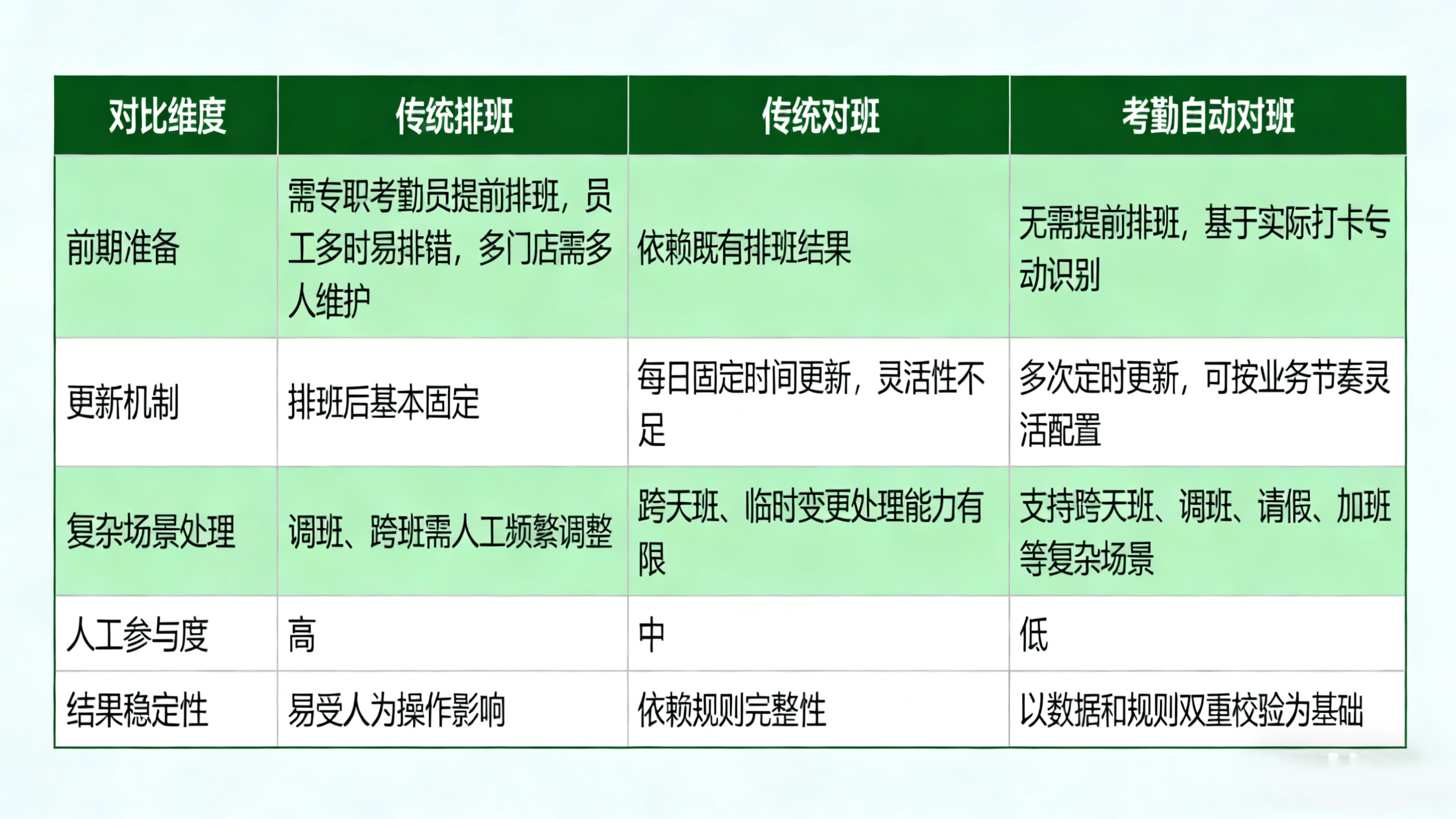 考勤管理对班方式对比