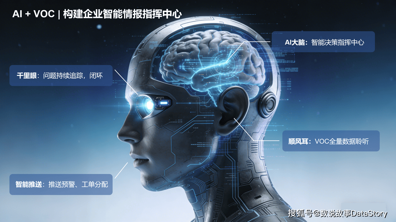 ,凭借在AI+VOC领域的深厚技术积累与丰富实践经验,以华为昇腾平台为底座,依托自研商业大模型SocialGPT和日化美妆、食品、3C 数码等多行业专属数据库,融合公域舆情、私域互动、售后反馈等全域数据,构建以数据聆听洞察为“耳”,问题追踪闭环为“眼”,预警推送和工单分配为“口”,智能决策指挥为“脑”的企业智能情报指挥中心,横向