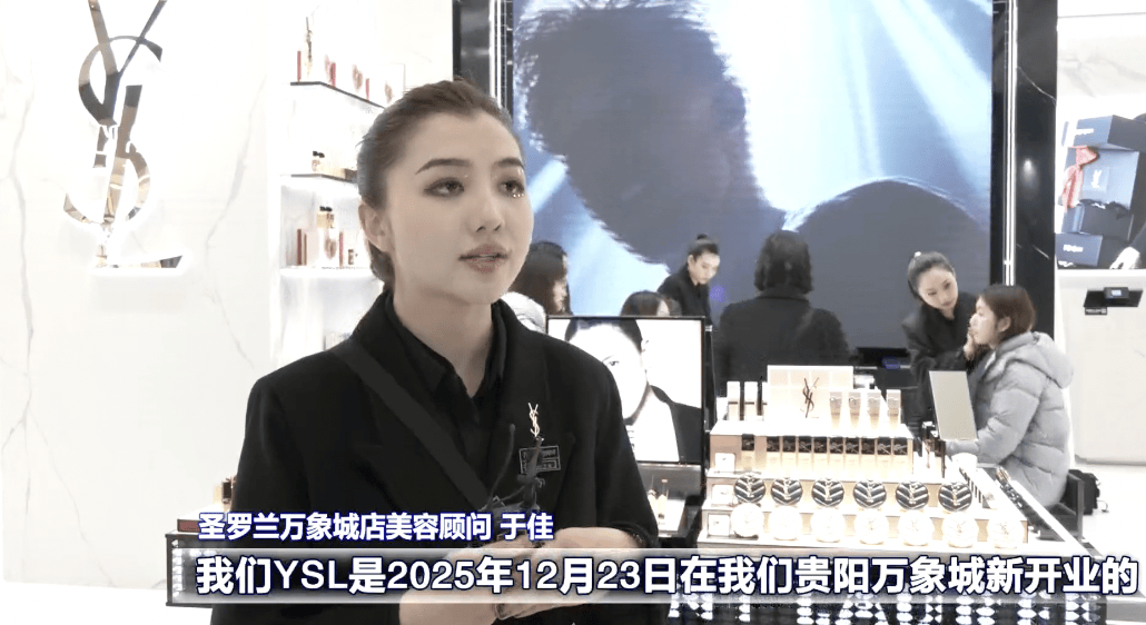 圣罗兰万象城店美容顾问 于佳:我们YSL是2025年12月23日在贵阳万象新开业的,人流场场爆满,我们的业绩是非常突出的,现在也是万象城美妆区TOP1。