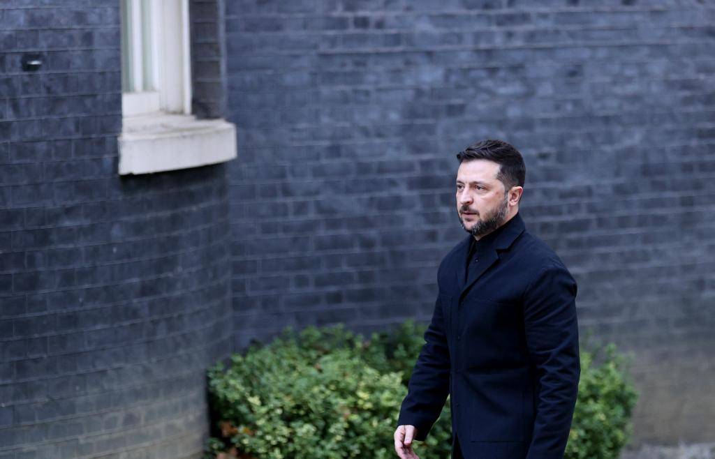 10月24日,在英国伦敦,乌克兰总统泽连斯基走向唐宁街10号首相府。 新华社记者 李颖 摄