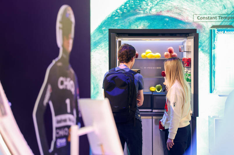 全空间保鲜冰箱MRF-570W则破解传统冰箱“局部保鲜”难题,AI保鲜技术可根据环境温度智能调节化霜频率,双蒸发器系统实现冷藏冷冻独立控温,杜绝串味与温度波动;AI洗烘套装通过整合衣物、操作及设备数据,精准识别衣物重量与材质,智能生成洗护参数,烘干环节自动判断烘道清洁状态,兼顾效率与护形。