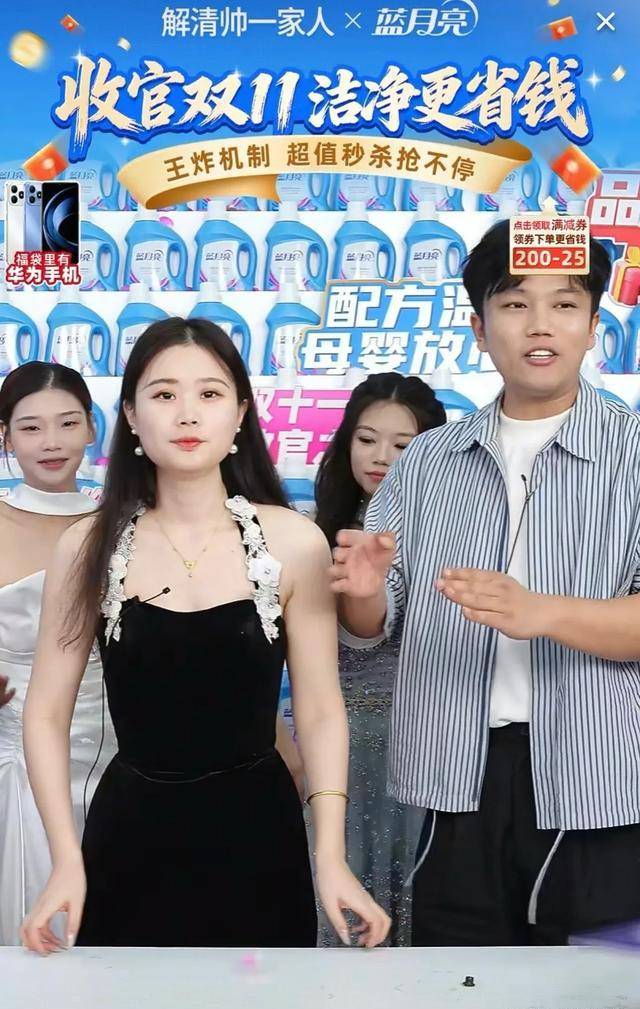 与他们相比,解清帅换了另一套打法。他把妻子嫂子妹妹拉进直播间,取名解家三美,试图复制闺蜜团的亲近感。首播那天,三人穿着同色毛衣,看起来像连在一起的三朵花,弹幕兴奋得飞速刷新,说终于不必再盯着解清帅的扑克脸。但到了第二场就露了底,嫂子语速过快,妹妹记不清成分表,妻子一紧张就把拍立减说成拍立送,一个晚上后台就堆了四十多条投诉。